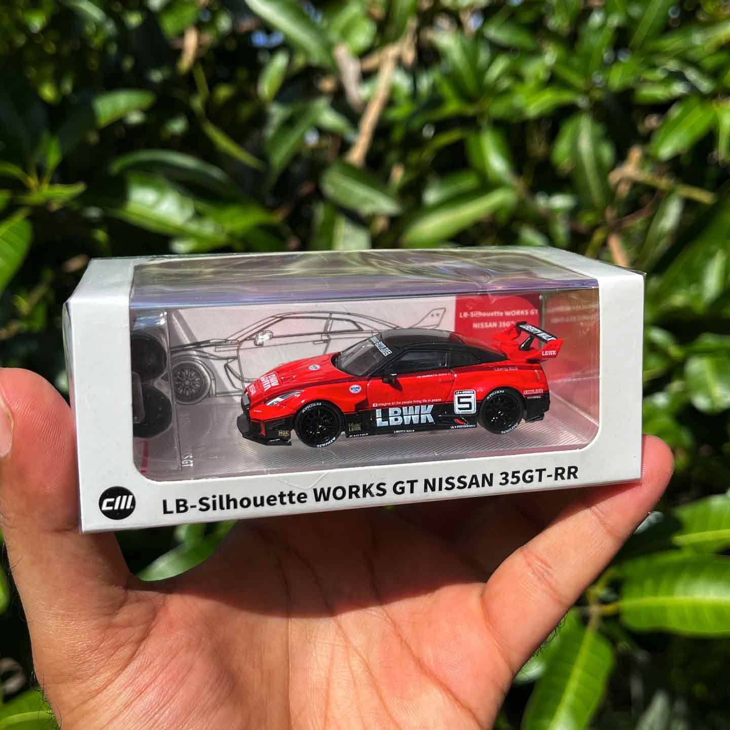 – Product Name: CM Model 1:64 LB-Silhouette Works GT Nissan 35GT-RR Carbon RED/BLACK