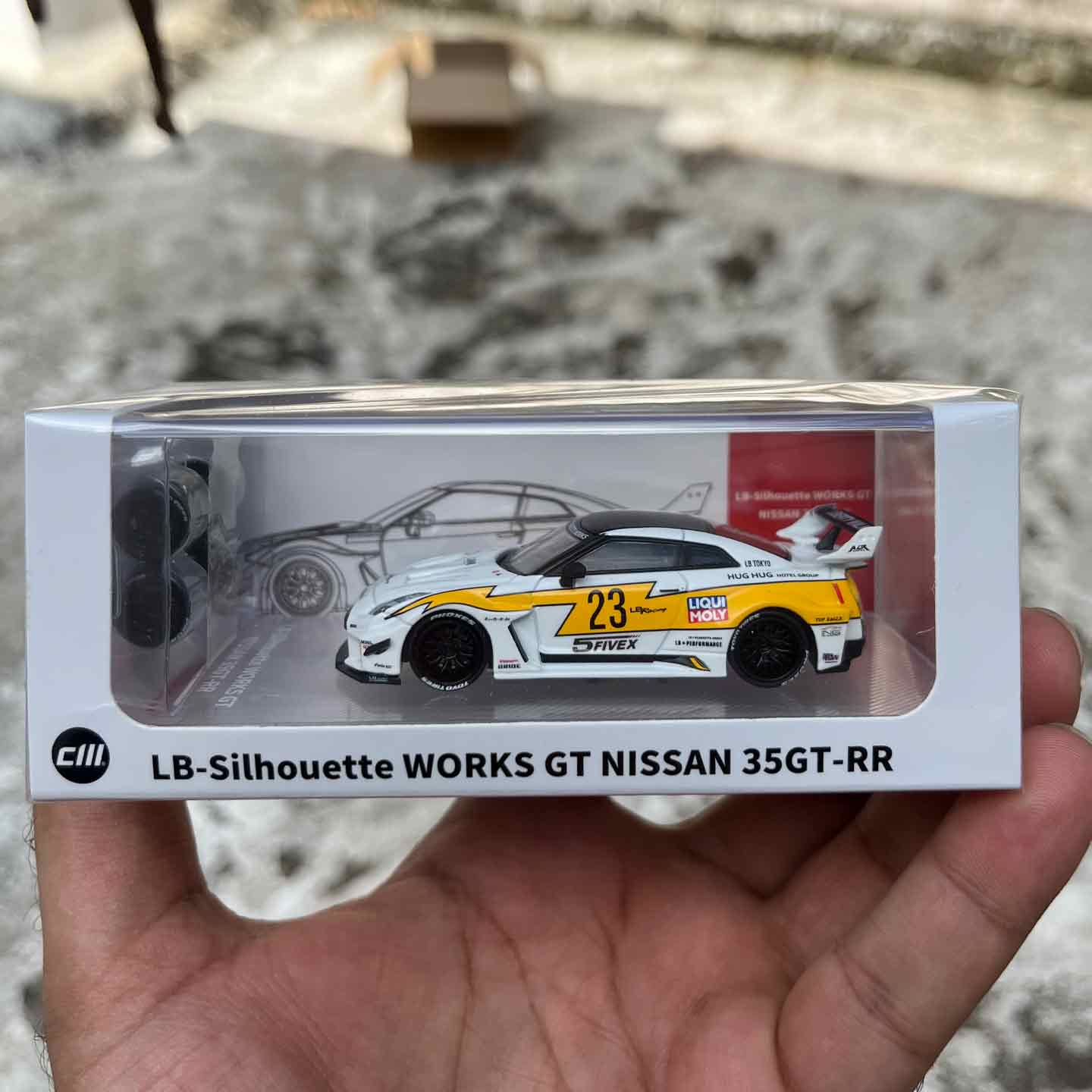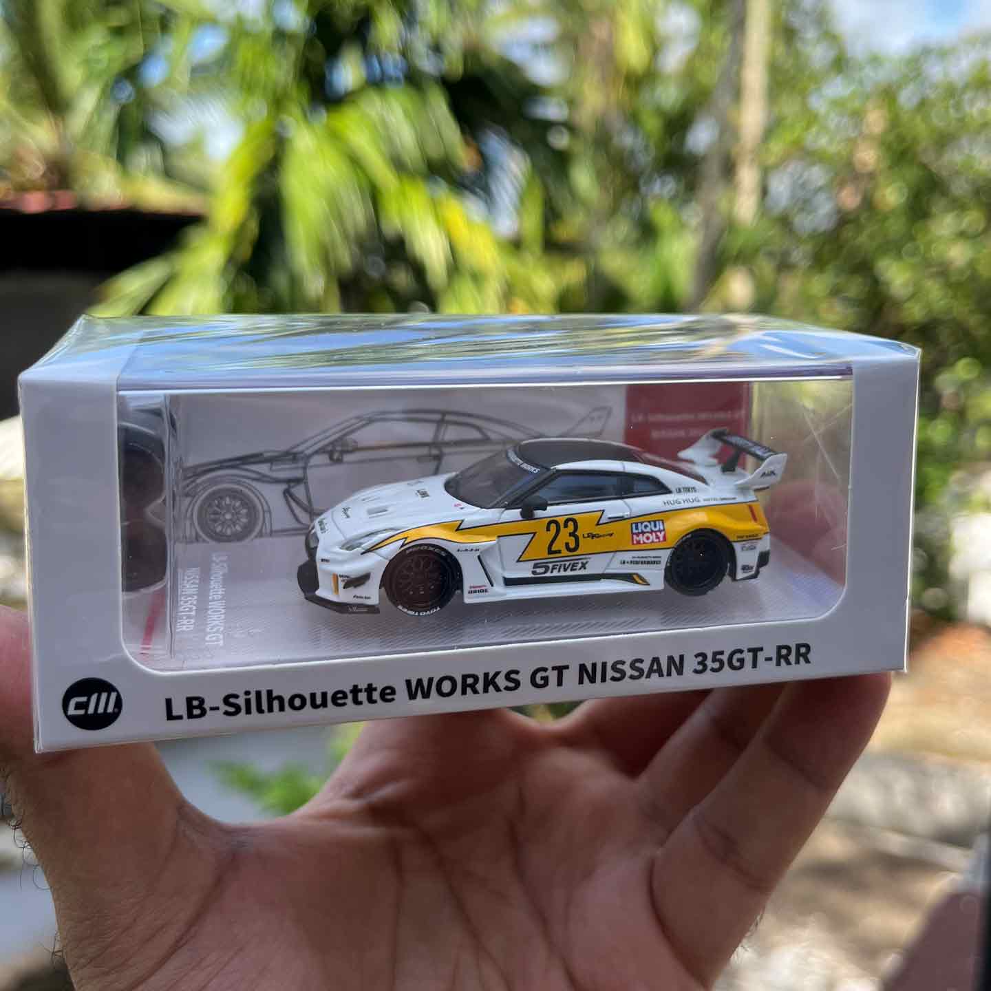 – Product Name: CM Model 1:64 LB-Silhouette Works GT Nissan 35GT-RR Carbon White with Yellow