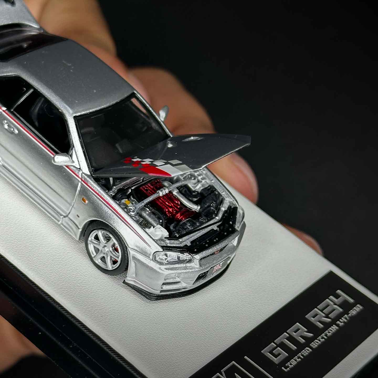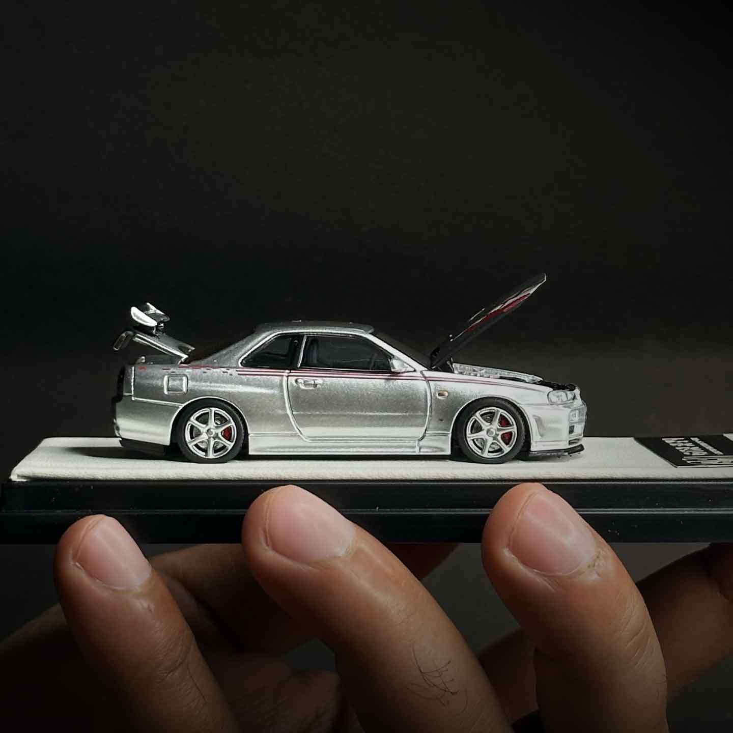 Whether you’re a JDM collector or a diecast enthusiast, this silver R34 GT-R will add a sleek, stylish touch to your display.