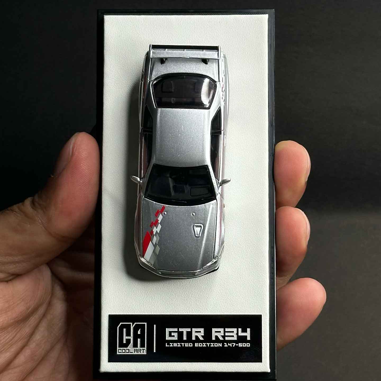 The Cool Art 1:64 Nissan Skyline GT-R R34 Silver Edition delivers a clean, elegant take on the iconic JDM legend. Featuring a refined silver finish, this R34 model stands out with smooth lines, accurate detailing, and collector-quality presentation.