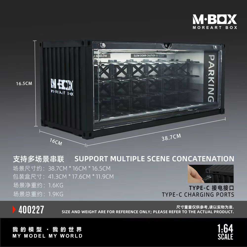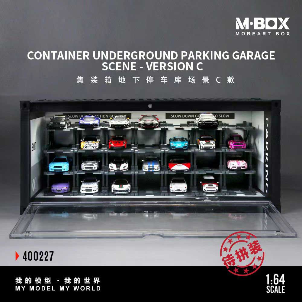 Create a bold urban display with the MBOX 1:64 Container Underground Parking Garage Scene C MB400227. Designed for 1:64 scale diecast cars, this detailed diorama combines container-style architecture with an underground parking layout for a realistic city atmosphere.