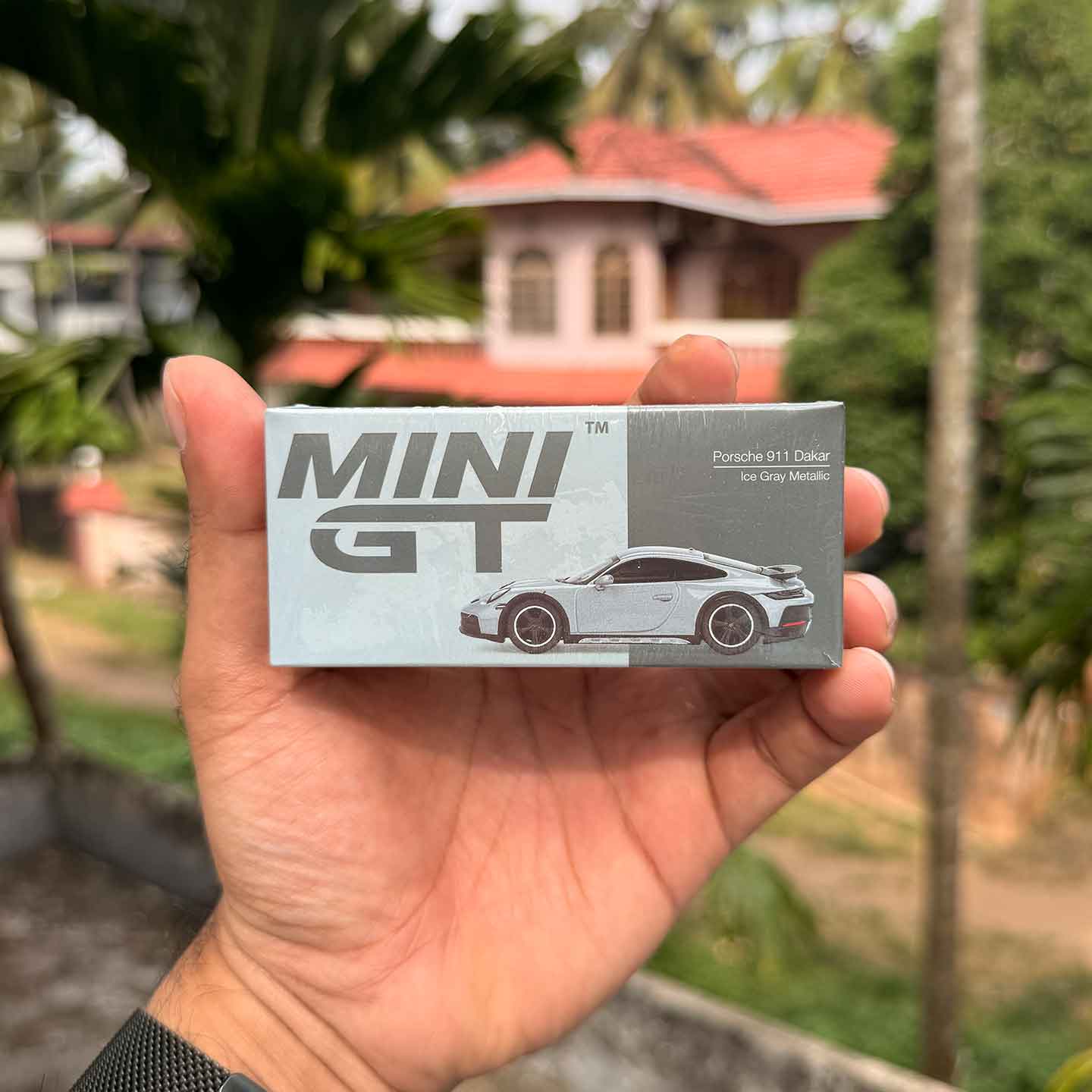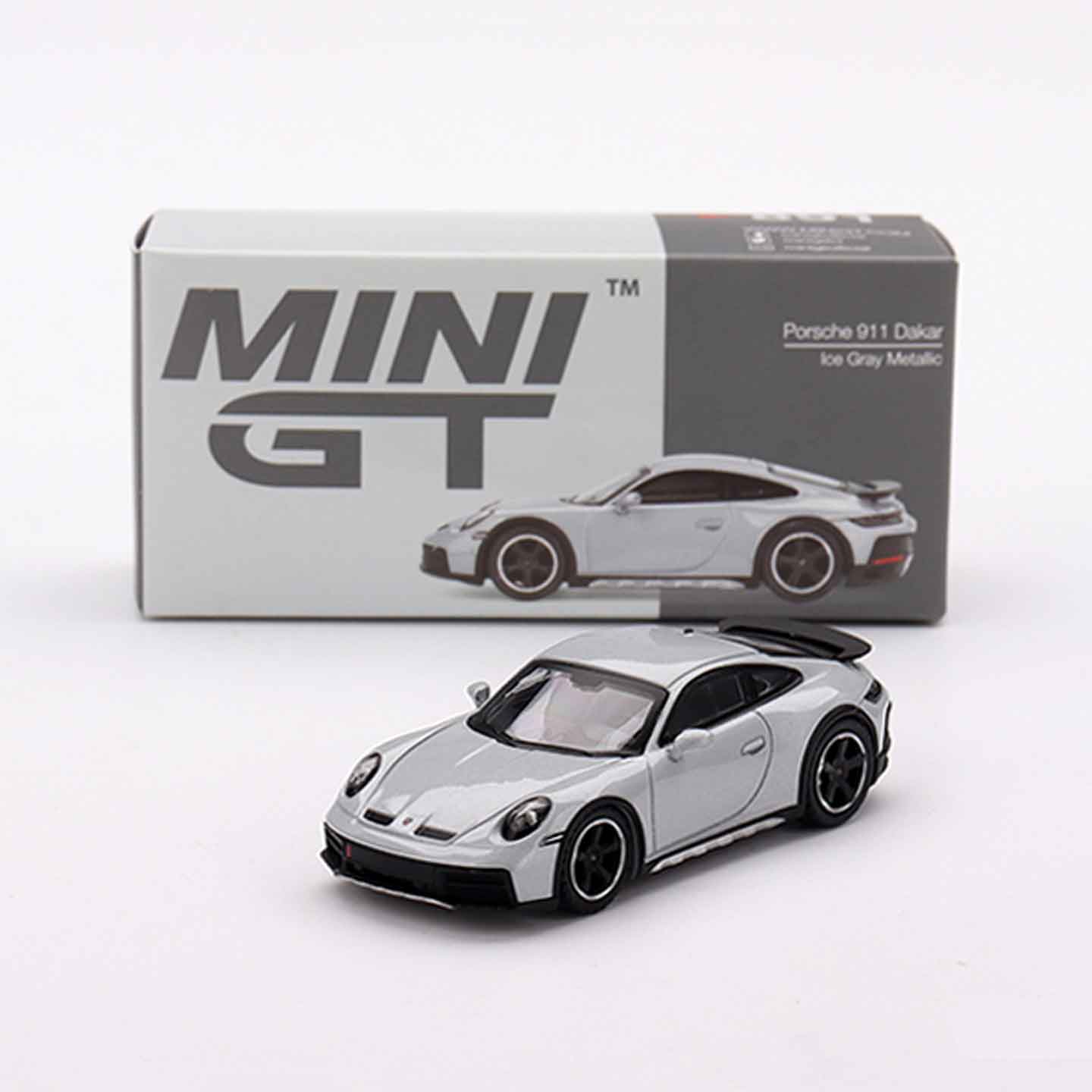 The Mini GT Porsche 911 Dakar Ice Gray Metallic diecast car model is a premium 1:64 scale collectible for Porsche and motorsport enthusiasts.