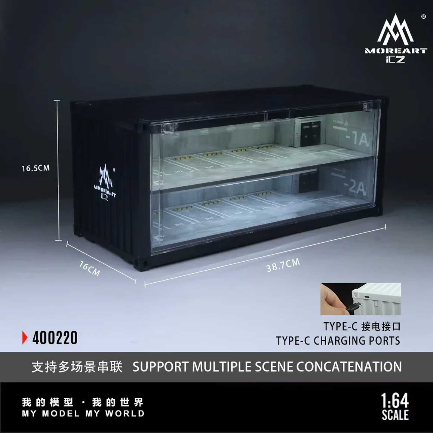 Create a bold industrial display with the Moreart 1:64 Container Underground Parking Garage MO400220. Designed for 1:64 scale diecast cars, this detailed diorama combines container-style architecture with an underground parking layout for a realistic urban atmosphere.