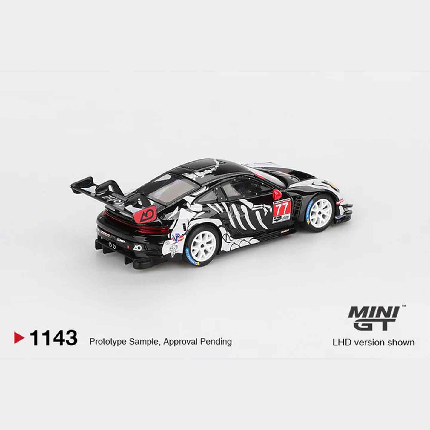 The Skeleton Rexy MiniGT 2025 Petit Le Mans 1:64 scale diecast (Pre-Order) is the latest collector’s release from AO Racing and TSM MiniGT. This special-edition Porsche 911 GT3 R #77, nicknamed “Rexy,” comes in a haunting skeleton livery created for the 2025 Petit Le Mans.